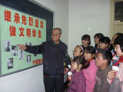 在不久前习近平总书记视察天津时,作为一名志愿者受到了总书记的接见。总书记紧紧地握住他的手,语重心长地对他说:“您要继续发扬光荣的革命传统精神!”当时,他穿着洗得发白的军装,给总书记敬了一个军礼,铿锵表态:“我是历史的亲历者,也是一名志愿者,我就想把我们党的历史、党的优良传统和作风讲给孩子们听。只要我还走得动,我就要发挥余热,教育好下一代,让祖国的花朵从小就听党话跟党走,培养好中国特色社会主义事业的接班人。”